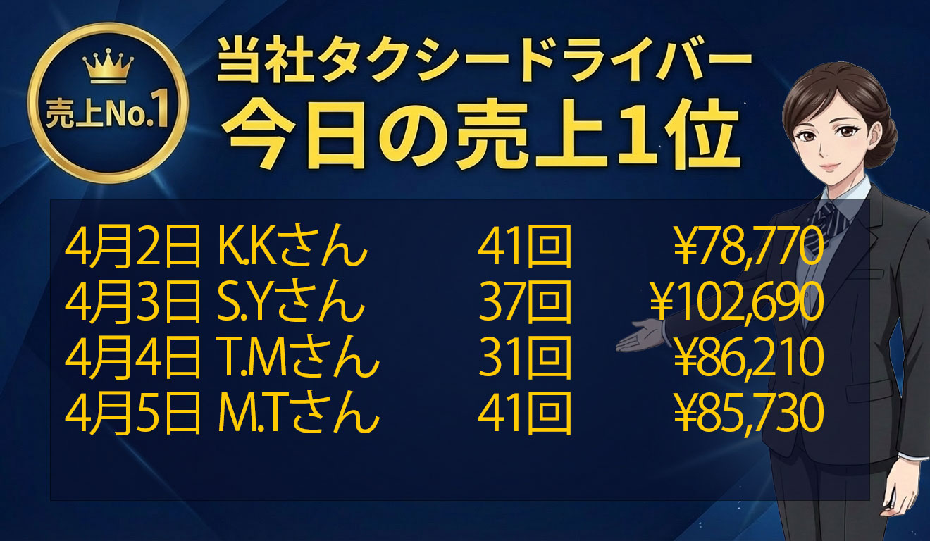 売上だけでなく昨年度、無事故・無違反・無苦情の模範社員です。