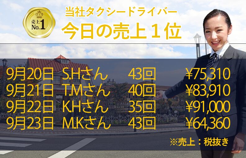 2025年9月20日~23日 売上トップタクシードライバー2025-09-24T09:41:10+09:00