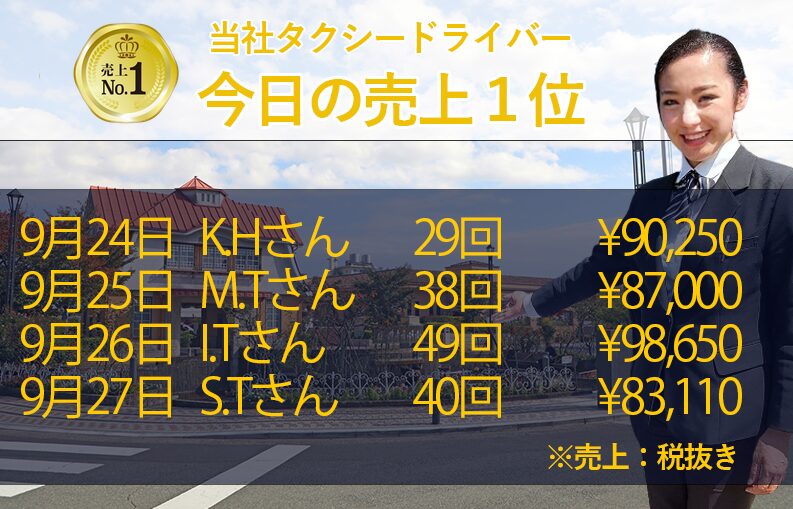 2025年9月24日~27日 売上トップタクシードライバー2025-09-29T08:46:28+09:00