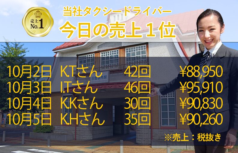 2025年10月2日~10月5日 売上トップタクシードライバー2025-10-06T23:50:19+09:00